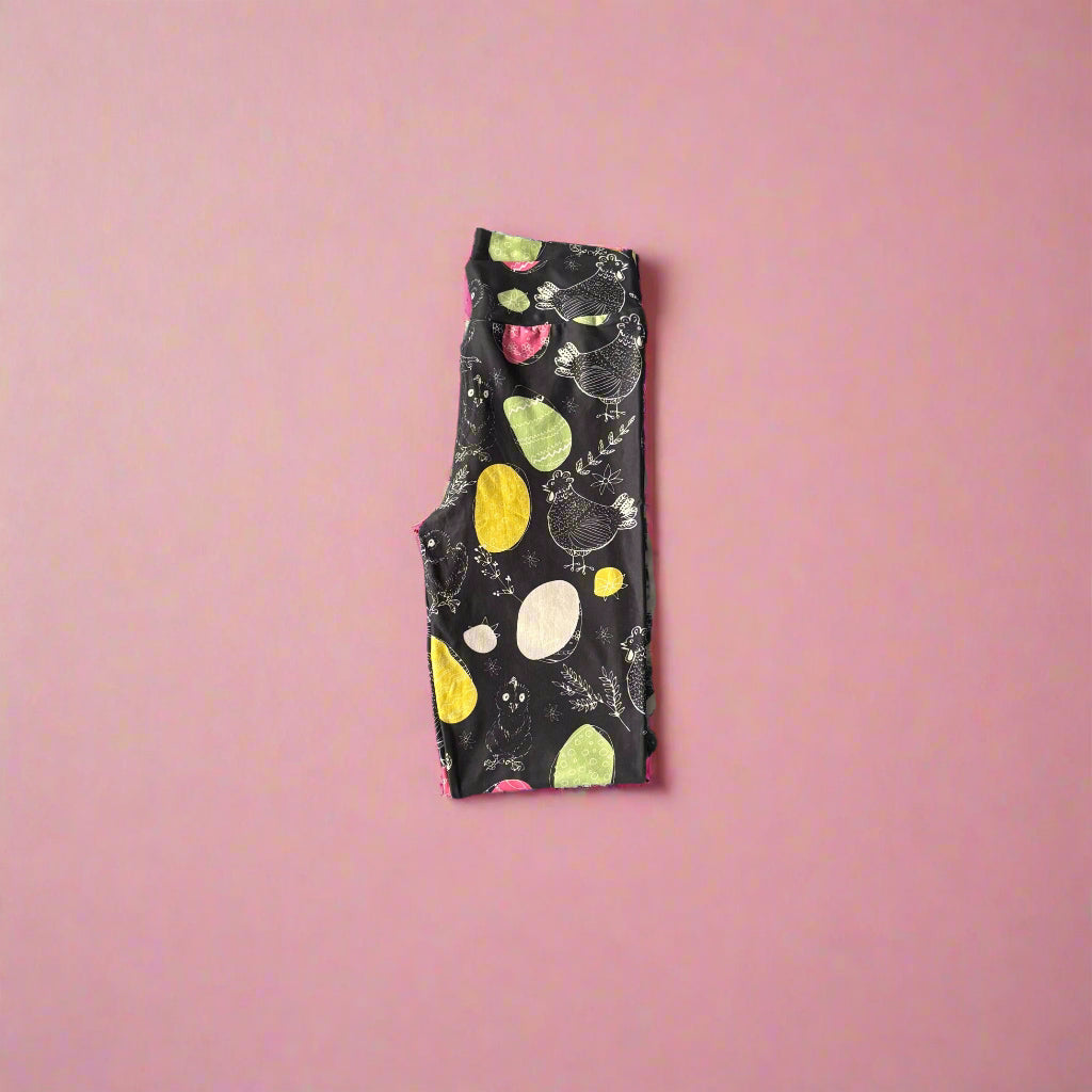 These Chicken & Egg design leggings combine playful style with practical comfort for active girls. Made with stretchy fabric, they allow full freedom of movement, perfect for playdates, school, or casual outings. The charming chicken and egg pattern adds a fun, unique touch that kids will love, while the durable material ensures long-lasting wear through all their adventures. Ideal for parents seeking quality leggings that balance creativity and functionality.